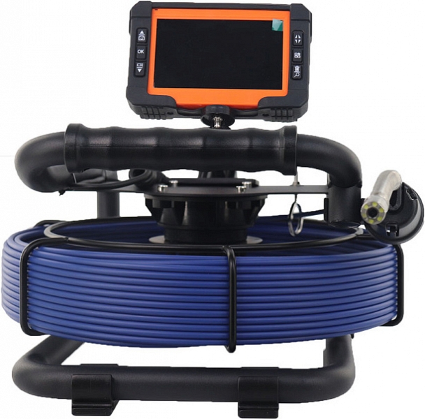 - Головка камеры Ø 12,8 × 21 мм и проталкиваемый кабель Ø 4,8 мм × 30 м из стекловолокна, подходящие для труб Ø 32 – 65 мм, длиной до 30 м